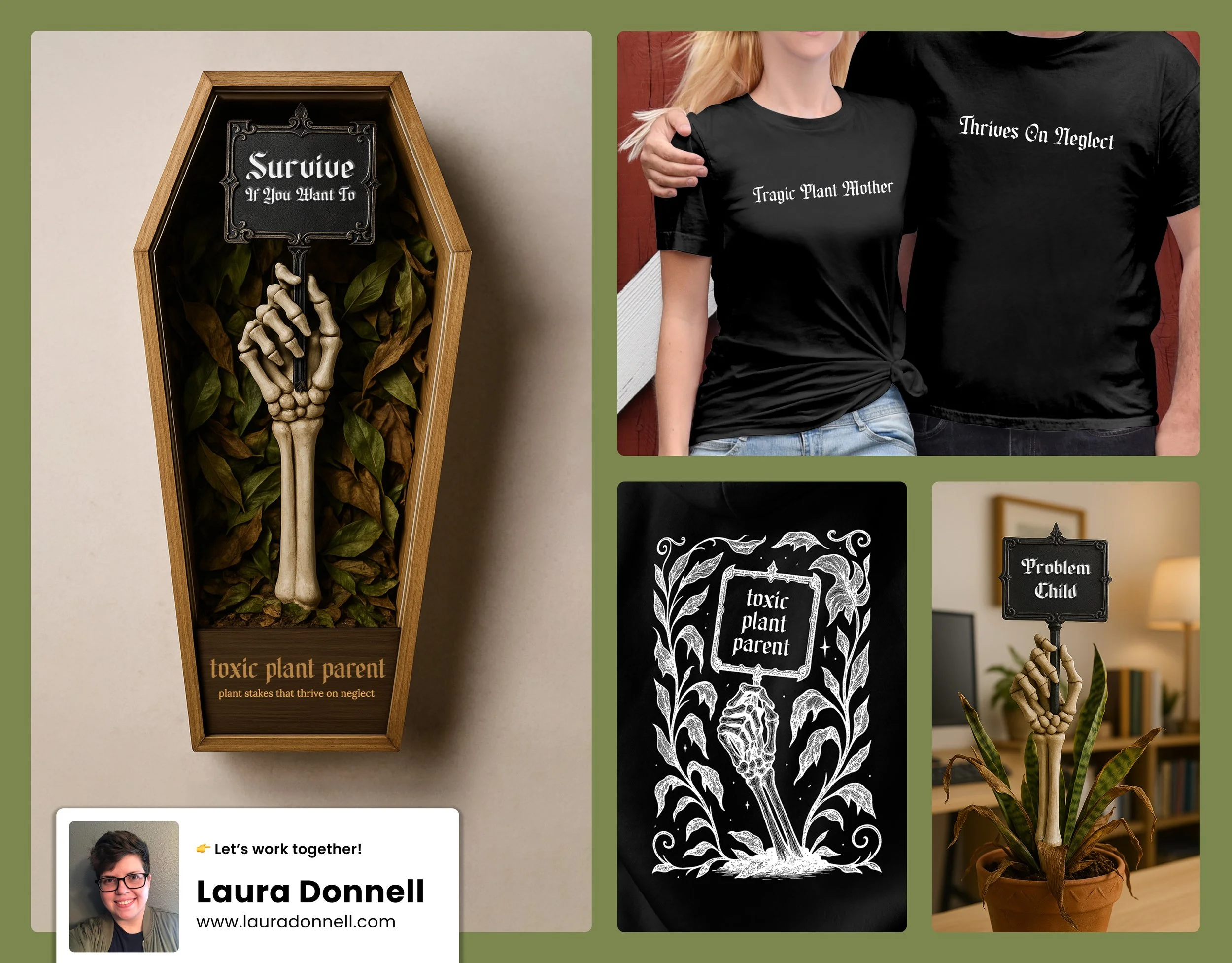 💡 The Solution: Skeleton-hand plant stakes and gothic merch so the brand can find its people.